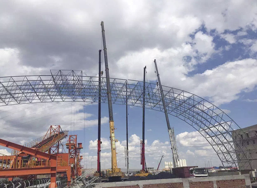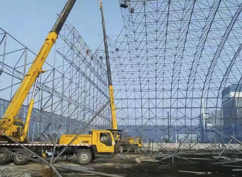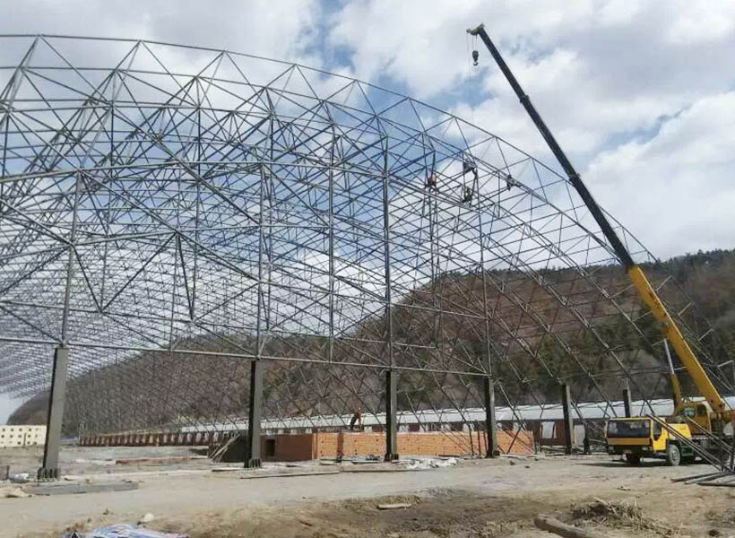 构成网架的基本单元有三角锥,三棱体,正方体,截头四角锥等,由这些基本单元可组合成平面形状的三边形,四边形,六边形,圆形或其他任何形体。 具有空间受力、重量轻、刚度大、抗震性能好等优点。